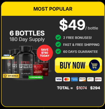 To ensure the authenticity and safety of your purchase, it’s highly recommended that you get Steel Power™ exclusively from the official website. Right now, you can even enjoy a massive discount on the 6-bottle package, saving up to $780 and getting the lowest price of $49 per bottle.