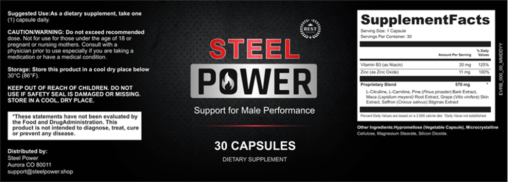 Have you heard of Steel Power™? This dietary supplement contains a blend of ingredients studied for their potential to support male performance, physical endurance, and blood circulation through natural components.